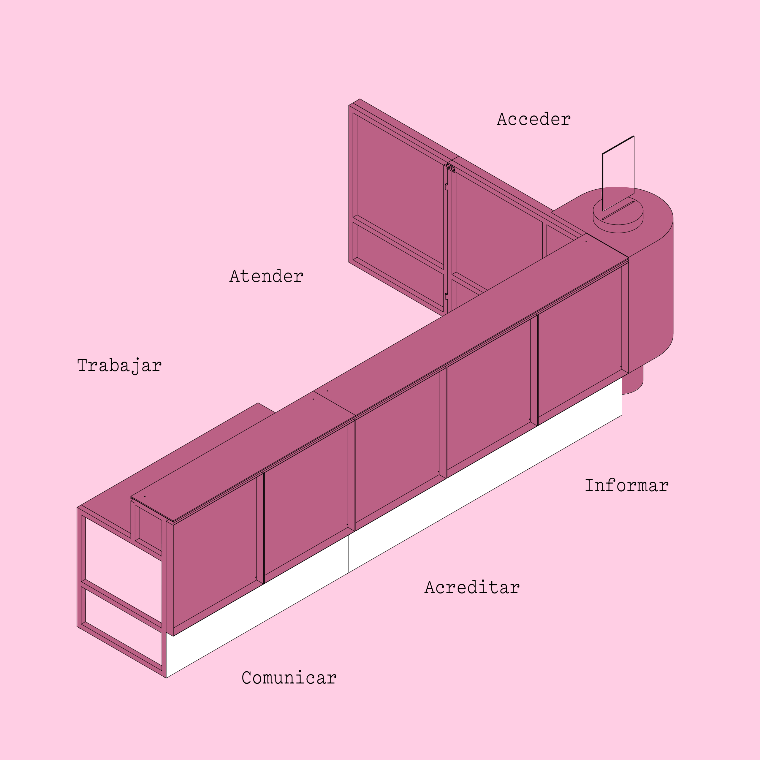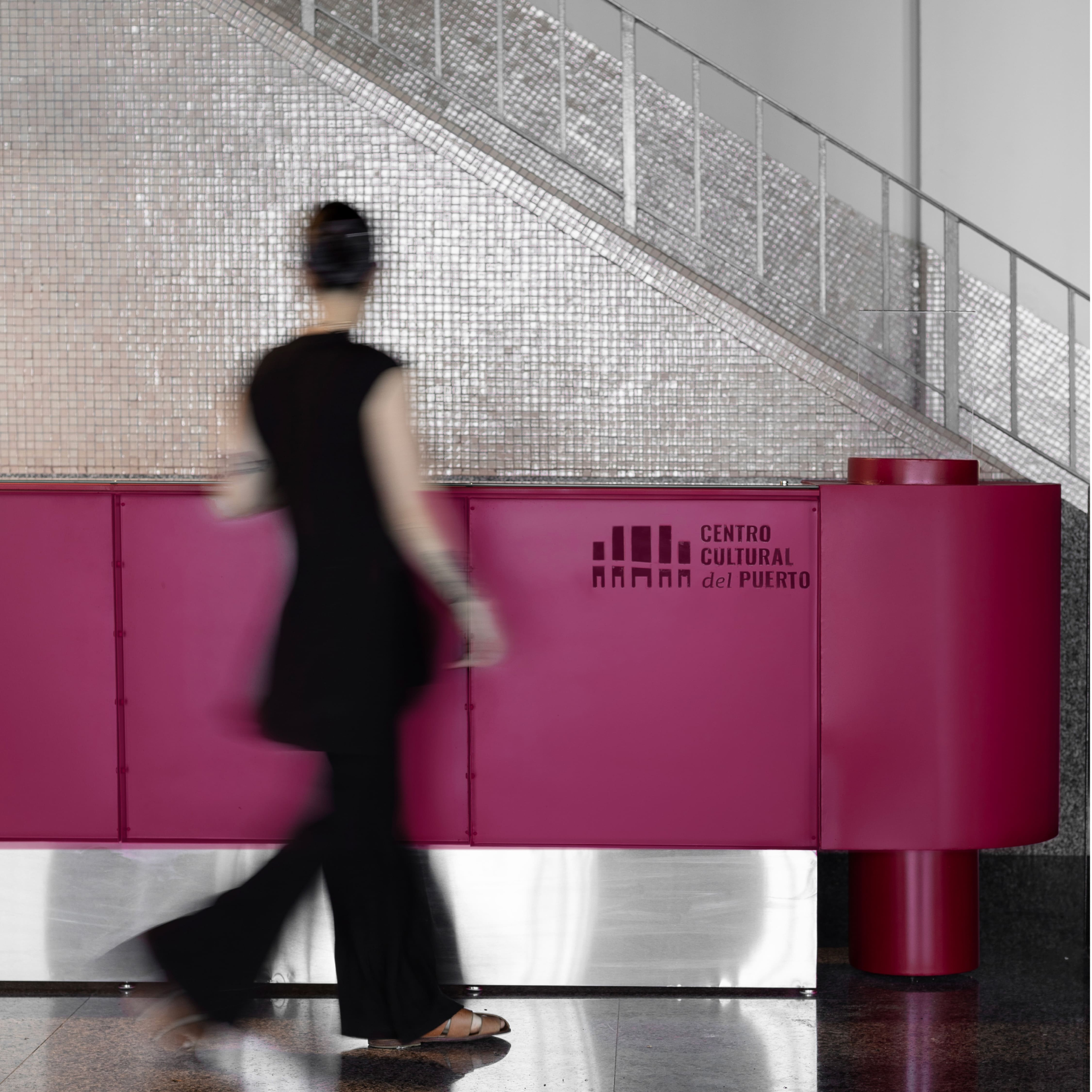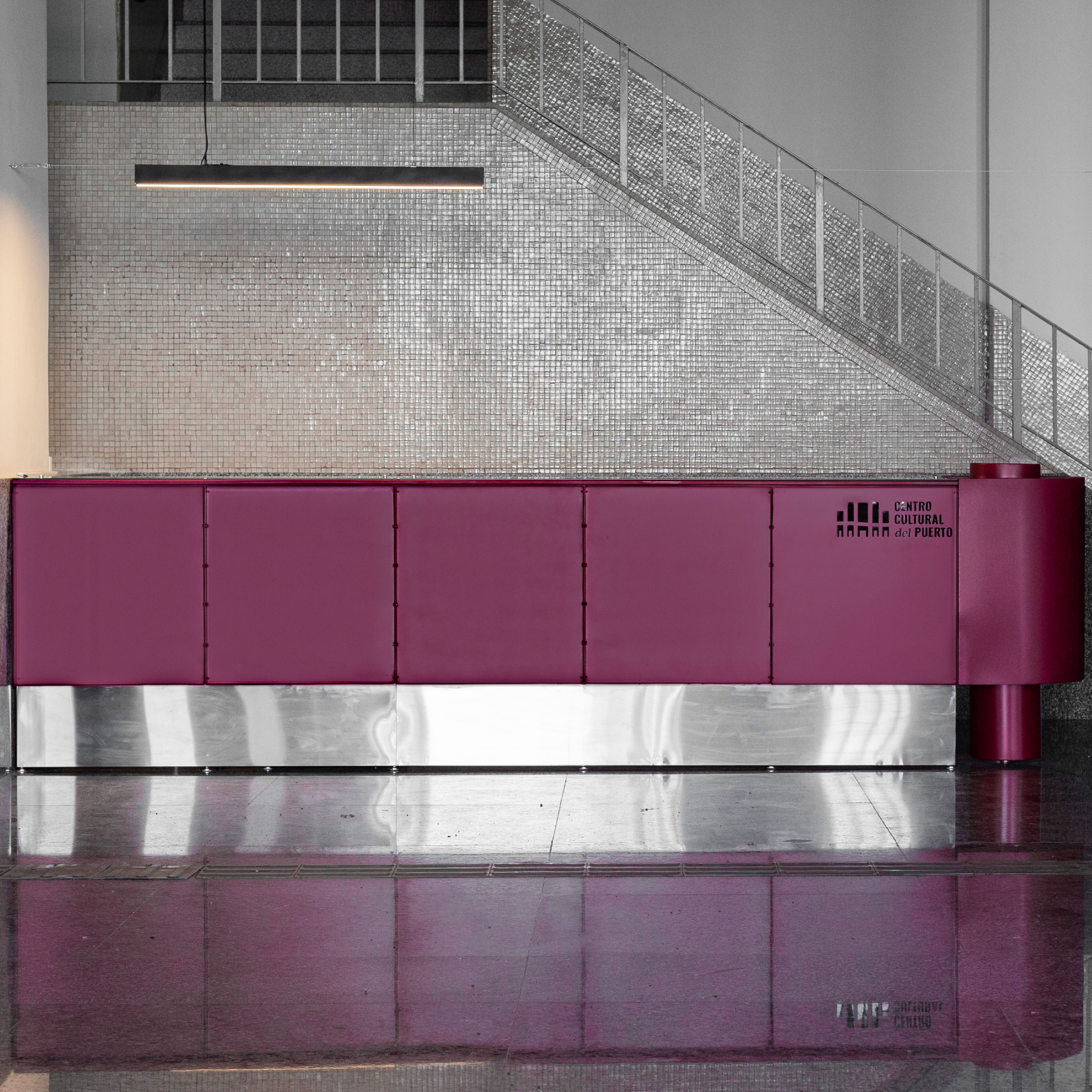 What is the relationship between the reception and the cranes at the Port of Asunción? In addition to the furniture being inspired by their arms and cabins, the same original color as these old cranes from around 1920 was used, discovered under several layers of paint during the latest restoration carried out on the building between 2019 and 2023.